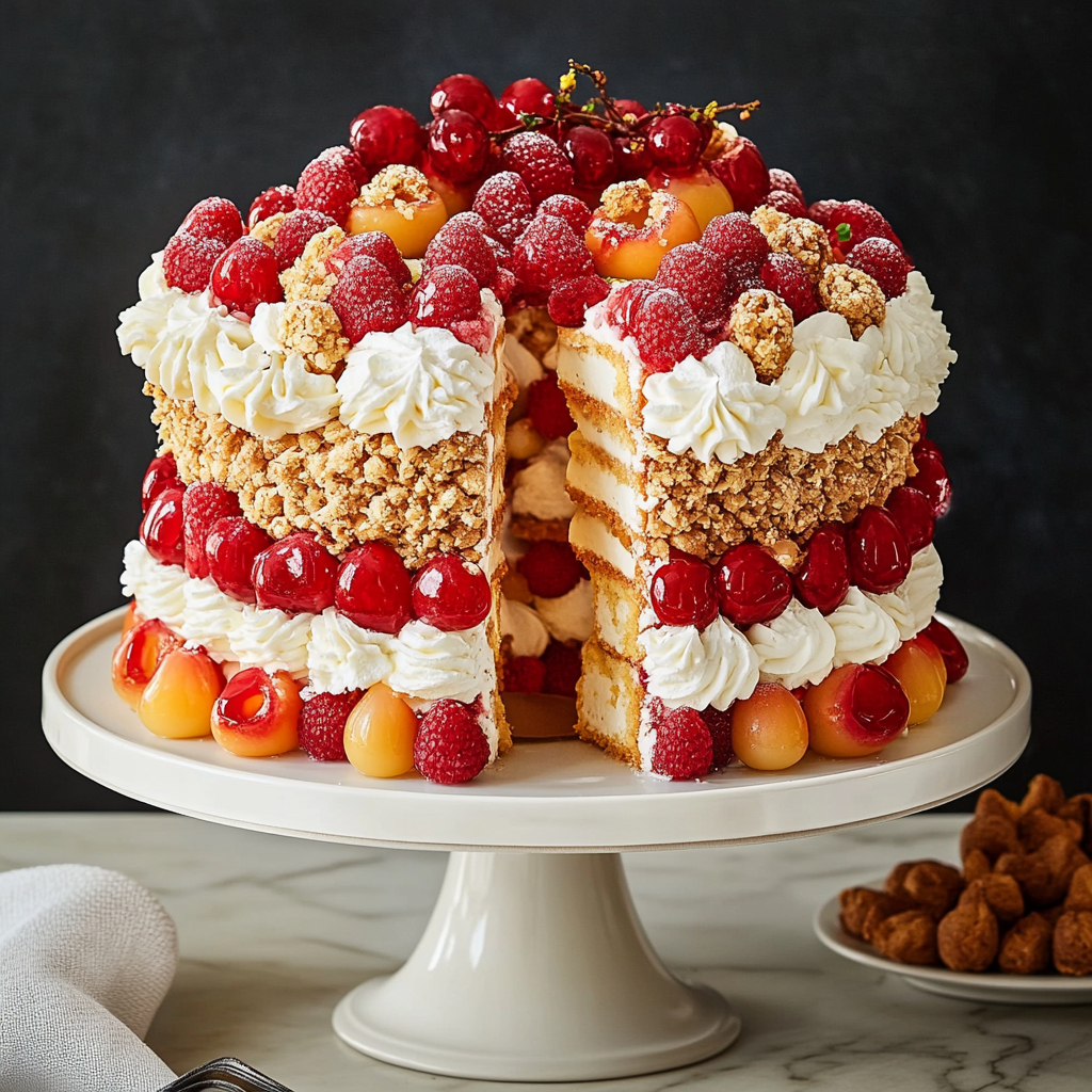 - Festliche Präsentation: Durch die dekorative Gestaltung ist dieser Kuchen ideal für besondere Anlässe und Feiern.