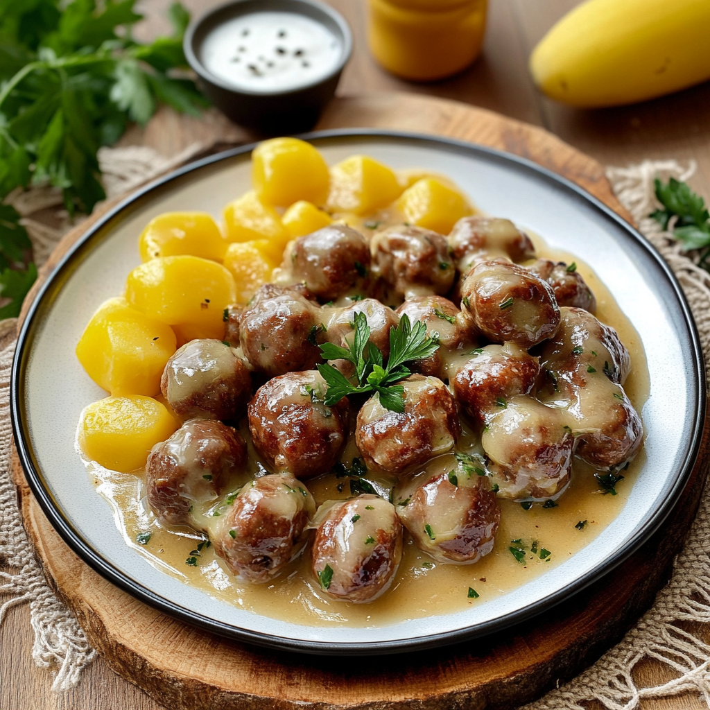 • Püree: Cremig und buttrig, eine tolle Ergänzung zu den saftigen Klopsen.
