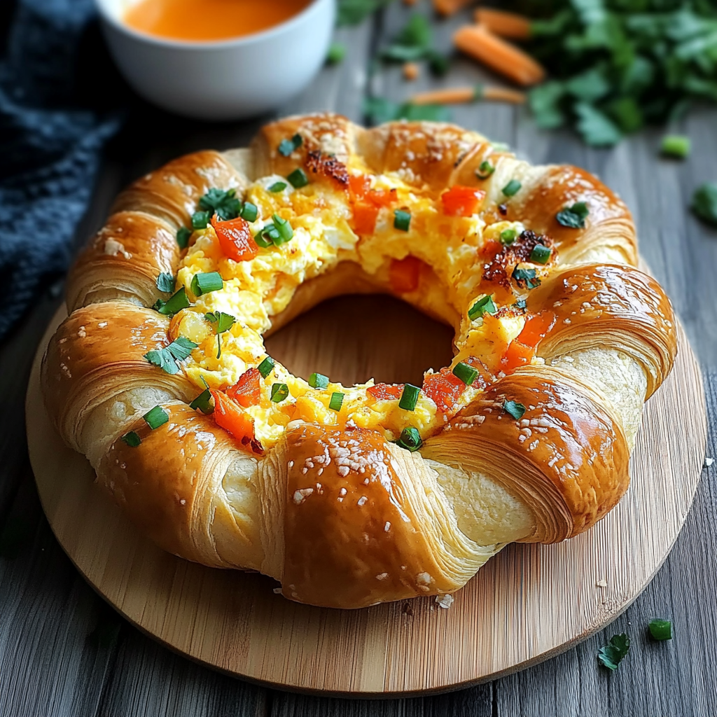 Wie man Rührei Ring aus Croissant Teig mit viel Käse serviert